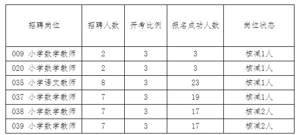 2023年蘇州市吳江區(qū)教育系統(tǒng)選聘優(yōu)秀畢業(yè)生至資格初審結束,共有6個崗位報名人數(shù)不足開考比例,F(xiàn)根據(jù)規(guī)定,核減招聘計劃,并公布如下: