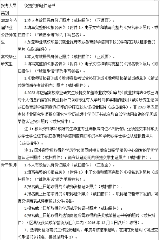 1、參加考核的人員為筆試后入圍考核的人員、選調(diào)骨干教師崗位和僅限公費(fèi)師范生報(bào)考崗位的資格初審合格人員。
