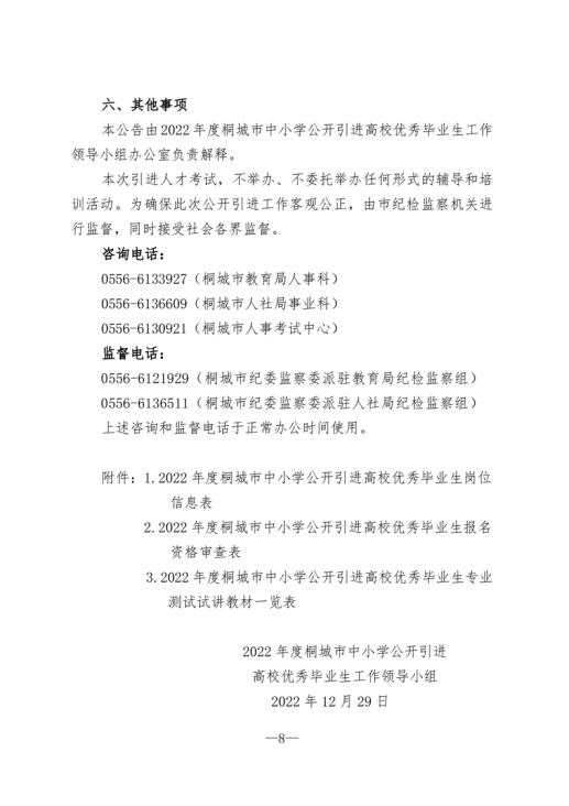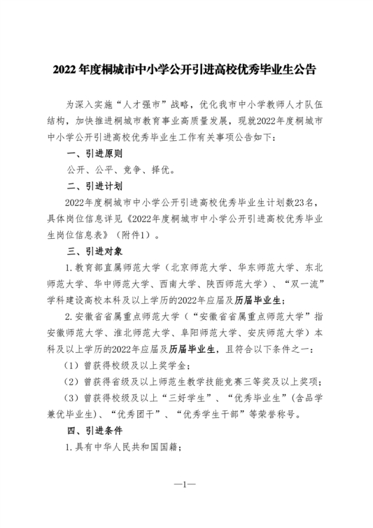 附件1:2022年度桐城市中小學公開引進高校優(yōu)秀畢業(yè)生崗位信息表.xls