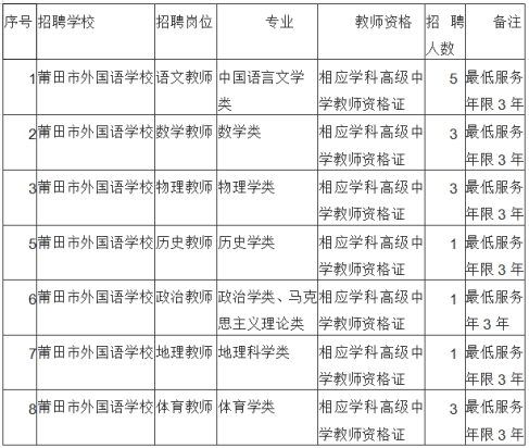 在莆田市人社局(http://rsj.putian.gov.cn)、莆田市教育局(http://jyj.putian.gov.cn)、莆田市外國語學校(http://www.ptfls.com)、有關大學的網站、畢業(yè)生就業(yè)服務指導中心等有關網站上發(fā)布招聘方案等信息。