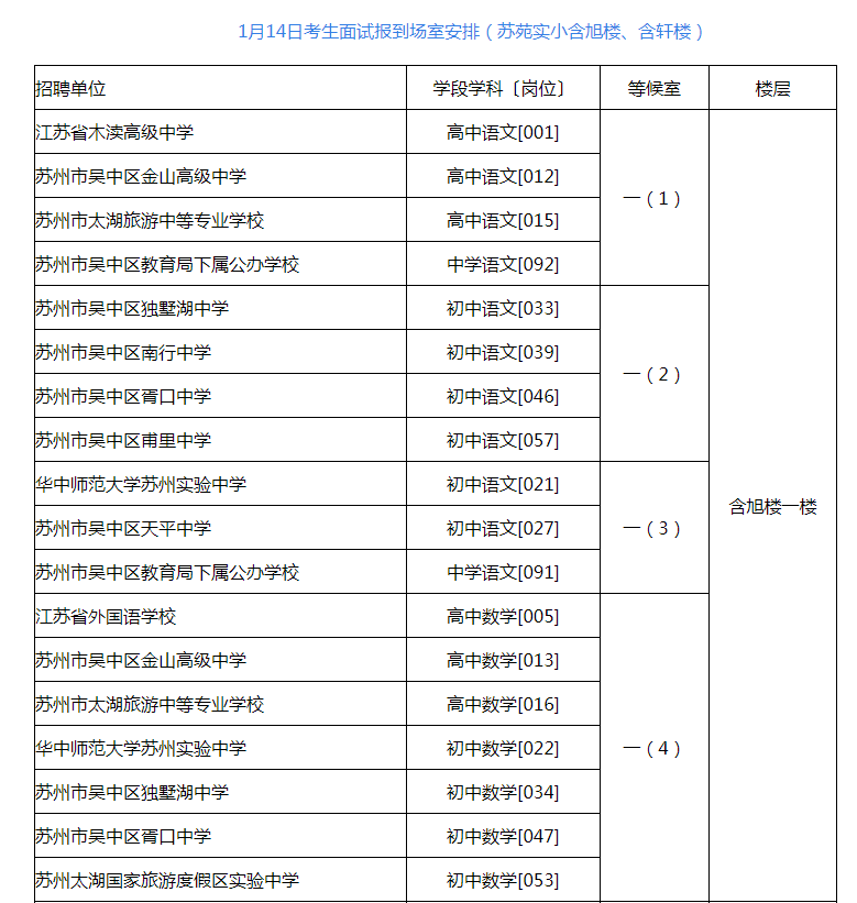 23年吳中區(qū)選聘優(yōu)秀畢業(yè)生1月13日資格復(fù)審、1月14日面試報到場室安排