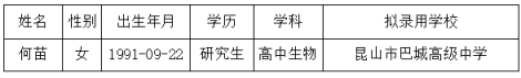 根據(jù)《2022年昆山市教育系統(tǒng)公開招聘中小學(xué)教師簡(jiǎn)章》,何苗(人員信息附后)已通過昆山市教育局組織的筆試、面試、體檢(因懷孕緩檢)和考察,現(xiàn)進(jìn)行錄用公示,公示時(shí)間為2023年2月7日~2月15日。如對(duì)公示對(duì)象有異議,可在公示期間向昆山市教育局反映,聯(lián)系電話:57553129。