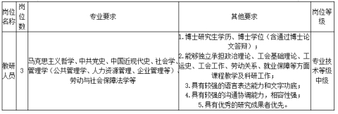 上海工會管理職業(yè)學(xué)院是上海市總工會主辦的工會干部培訓(xùn)院校,主要承擔(dān)干部教育培訓(xùn)、工會理論研究、工會學(xué)術(shù)交流等職責(zé)。因?qū)W院發(fā)展需要,根據(jù)《上海市事業(yè)單位公開招聘人員辦法》(滬人社規(guī)〔2019〕15號),結(jié)合學(xué)院建設(shè)和發(fā)展的需要,按照公開、公平、競爭、擇優(yōu)原則,面向社會公開招聘事業(yè)單位工作人員3名。