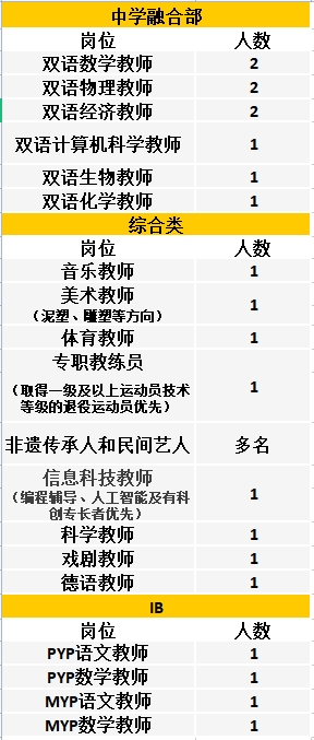 ★英語發(fā)音純正,能熟練使用英語進行相關學科教學,有學校班主任經驗者優(yōu)先,有A-Level、AP或IGCSE雙語教學經驗者或海外留學經歷者優(yōu)先。