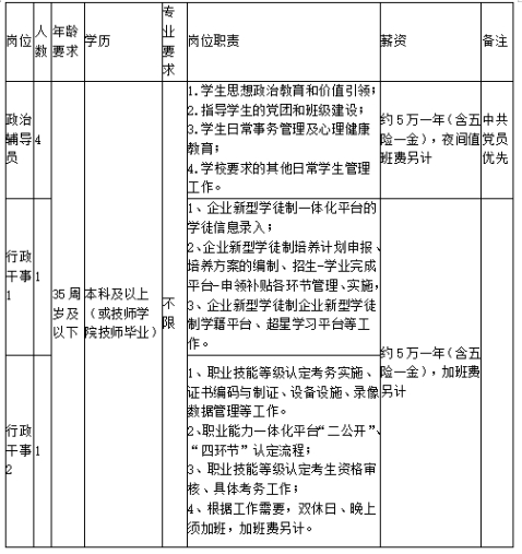 本次計劃招聘非事業(yè)編制教職工6名,其中政治輔導(dǎo)員4名、行政人員2名。以上崗位均采用勞務(wù)派遣的方式,與勞務(wù)公司簽訂勞動合同。