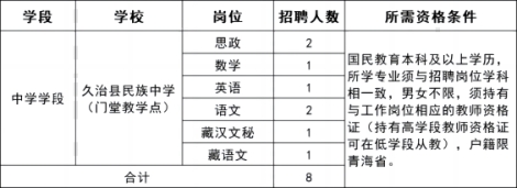 3.根據(jù)實(shí)際情況由久治縣教育局對(duì)新聘用人員的工作單位和具體工作崗位進(jìn)行統(tǒng)籌調(diào)劑,招錄人員須服從分配。