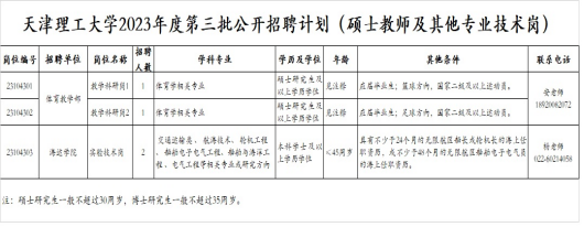 公開(kāi)招聘方案相關(guān)信息于2023年3月2日在天津市教育委員會(huì)(http://jy.tj.gov.cn)招聘信息專欄和天津理工大學(xué)黨委教師工作部、人事處門(mén)戶網(wǎng)站(http://rsc.tjut.edu.cn/)公開(kāi)招聘專欄發(fā)布。具體招聘崗位見(jiàn)《天津理工大學(xué)2023年度第三批公開(kāi)招聘計(jì)劃(碩士教師及其他專業(yè)技術(shù)崗位)》(附件1)。