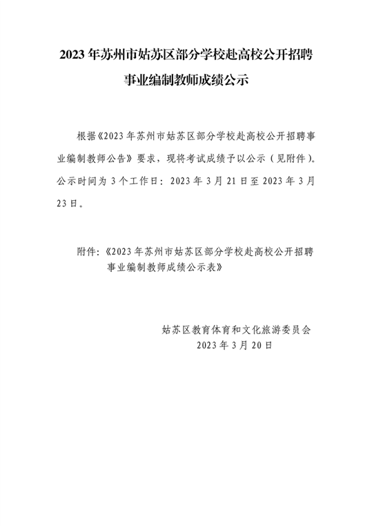 2023年蘇州市姑蘇區(qū)部分學(xué)校赴高校公開招聘事業(yè)編制教師成績公示