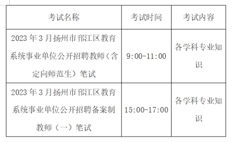 2023年3月?lián)P州市邗江區(qū)教育系統(tǒng)事業(yè)單位公開招聘教師(含備案制(一))筆試將于4月2日(周日)舉行,請考生盡早登錄原報名網(wǎng)站打印準考證,仔細查看考試時間、考試地點、考場號及座位號。以下相關(guān)注意事項,請關(guān)注!