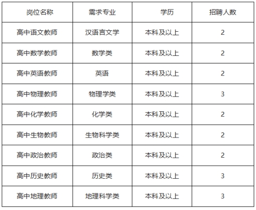 4.本科及以上學歷,具有相應學科高中教師資格證和計算機二級證,能熟練從事高中相應學科教學。
