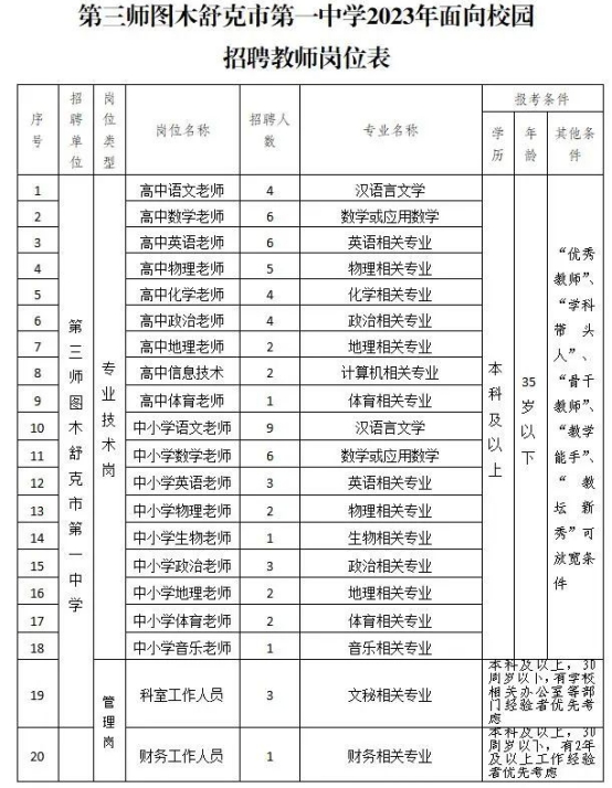 1.第三師圖木舒克市第一中學(xué)2023年面向校園招聘教師崗位表