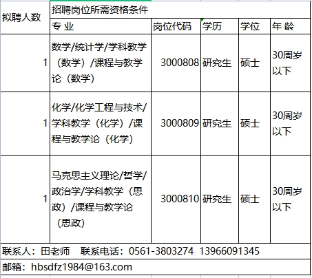 根據(jù)《2023年度淮北師范大學公開招聘工作人員公告(招聘專職輔導員、管理人員等)》,經(jīng)研究,學校決定近期開展2023年度附屬實驗中學教師(人數(shù)共3人,數(shù)學1人、政治1人、化學1人,均為事業(yè)編制)招聘工作,現(xiàn)將有關(guān)事項公告如下: