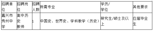 因我校教育教學工作需要,經(jīng)嘉興市教育局同意,嘉興市人力資源和社會保障局備案,2023年嘉興市秀州中學在全國范圍內公開招聘事業(yè)編制教師1名,F(xiàn)將有關事項公告如下: