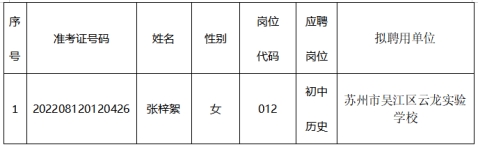 根據(jù)《2022年蘇州市吳江區(qū)教育系統(tǒng)第二次公開招聘教師公告》,經(jīng)過考試、體檢、考核(政審)等程序,以下擬聘用人員予以公示。