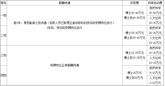 引進(jìn)博士人才的待遇根據(jù)不同學(xué)科、單位引進(jìn)的不同層次人才區(qū)分檔次,具體待遇如下表: