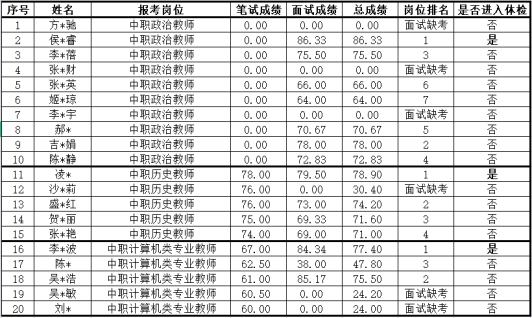 2023年江蘇省吳中中等專業(yè)學(xué)校(吳中開放大學(xué))公開招聘教師成績現(xiàn)予公告。請進(jìn)入體檢程序的考生,于5月16日(星期二)下午14:00到江蘇省吳中中等專業(yè)學(xué)校圖書館樓D901報到并領(lǐng)取體檢表。