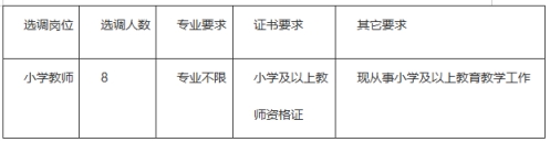 按照中共通海縣委編制委員會下達(dá)的編制使用計劃,2023年通海縣教育體育系統(tǒng)擬從縣外選調(diào)小學(xué)教師8人,選調(diào)崗位、人數(shù)及要求如下: