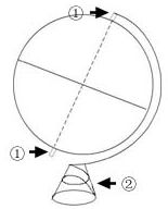 。5)在上圖中②的部位,包上一些橡皮泥,使做好的小地球儀不會(huì)翻倒。