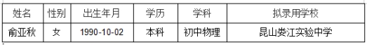 根據(jù)《2022年昆山市教育系統(tǒng)公開招聘中小學(xué)教師簡(jiǎn)章》,俞亞秋(人員信息附后)已通過昆山市教育局組織的筆試、面試、體檢(因懷孕緩檢)和考察,現(xiàn)進(jìn)行錄用公示,公示時(shí)間為2023年5月23日~5月31日。如對(duì)公示對(duì)象有異議,可在公示期間向昆山市教育局反映,聯(lián)系電話:57553129。