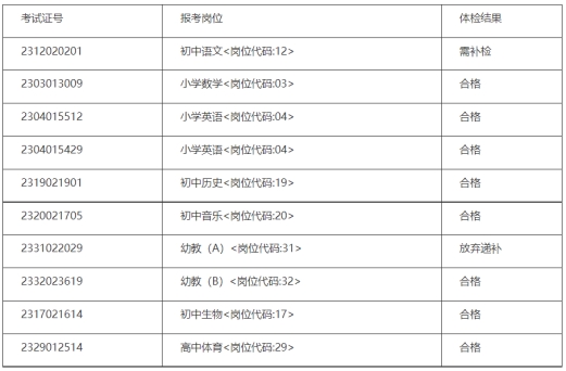 泰興市2023年公開(kāi)招聘教師遞補(bǔ)人員體檢結(jié)果