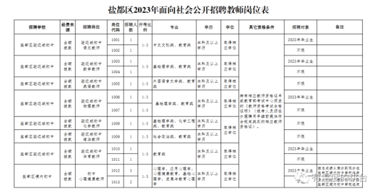 具體崗位及各崗位招聘條件等詳見(jiàn)《鹽都區(qū)2023年面向社會(huì)公開(kāi)招聘教師崗位表》(附件)。