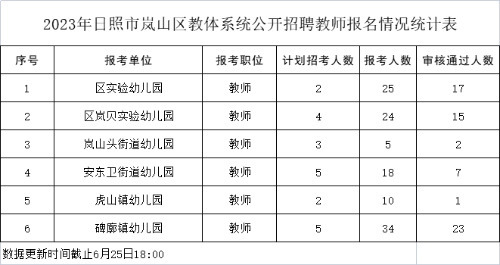 2023年山東日照市嵐山區(qū)教體系統(tǒng)公開招聘教師報名情況統(tǒng)計表(截止6月25日18:00)