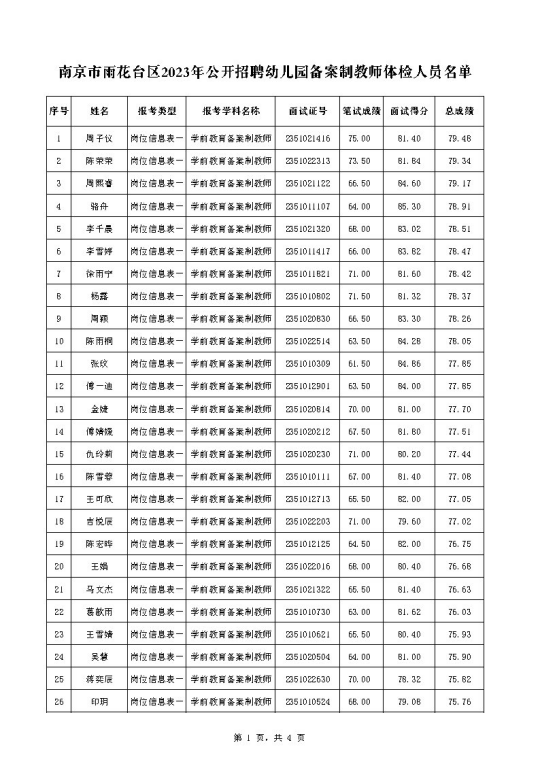 附件:南京市雨花臺區(qū)2023年公開招聘幼兒園備案制教師體檢人員名單