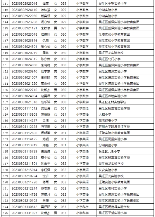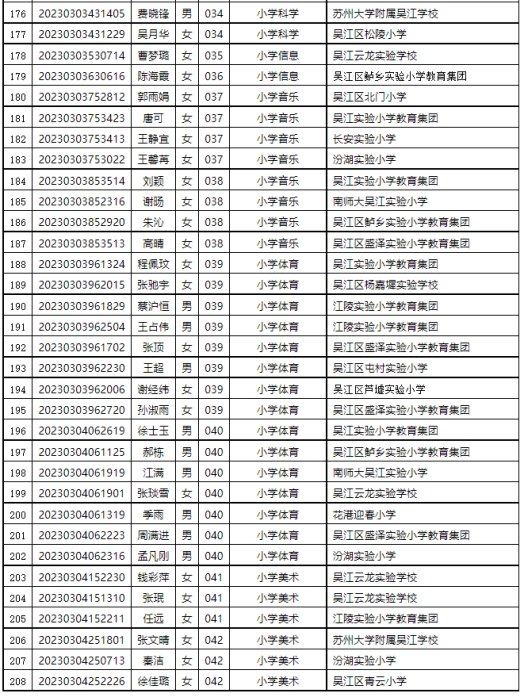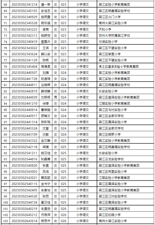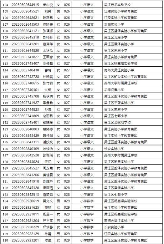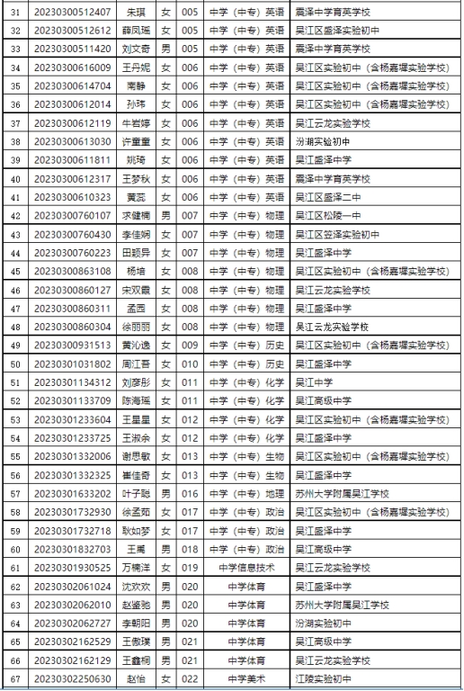 根據(jù)《2023年蘇州市吳江區(qū)教育系統(tǒng)公開招聘教師公告》,經(jīng)過考試、體檢、考核(政審)等程序,以下擬聘用人員予以公示。