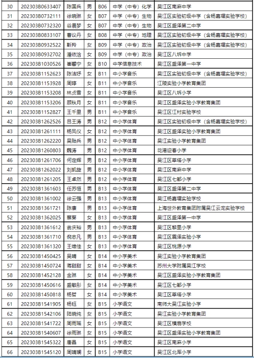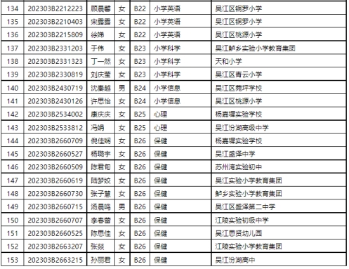 歡迎加入蘇州教師招聘群;571213887,考情、招聘信息早知道!根據(jù)《2023年蘇州市吳江區(qū)公開招聘備案制教師公告》,經(jīng)過考試、體檢、政審等程序,以下擬錄用人員予以公示。
