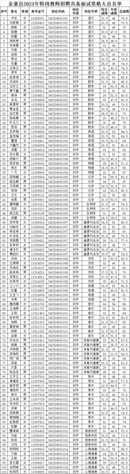 金寨縣2023年特崗教師招聘具備面試資格人員名單