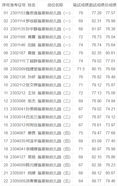 附件:海陵區(qū)2023年公開招聘幼兒園備案制教師體檢人員名單
