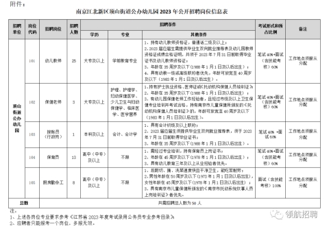附件:《南京江北新區(qū)頂山街道公辦幼兒園2023年公開招聘崗位信息表》