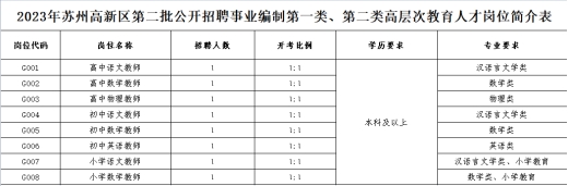 2023年蘇州高新區(qū)第二批公開(kāi)招聘事業(yè)編制第一類、第二類高層次教育人才崗位簡(jiǎn)介表