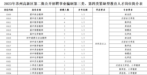 2023年蘇州高新區(qū)第二批公開(kāi)招聘事業(yè)編制第三類、第四類緊缺型教育人才崗位簡(jiǎn)介表