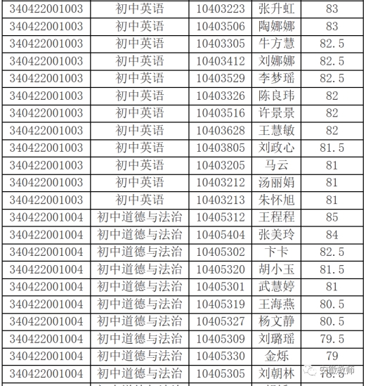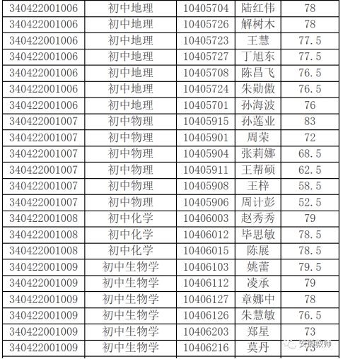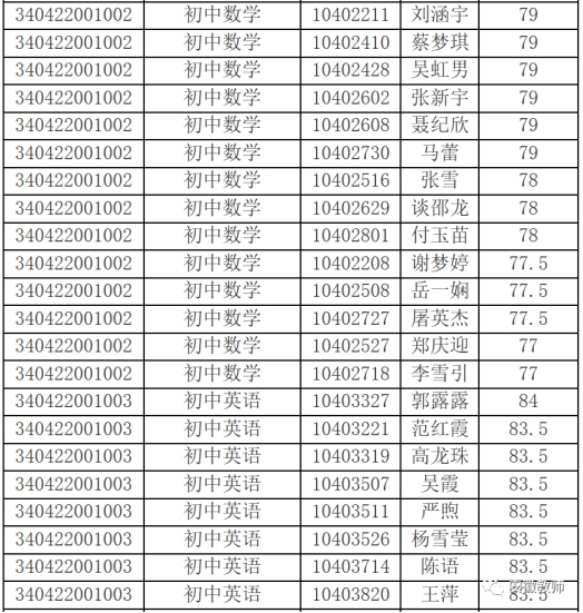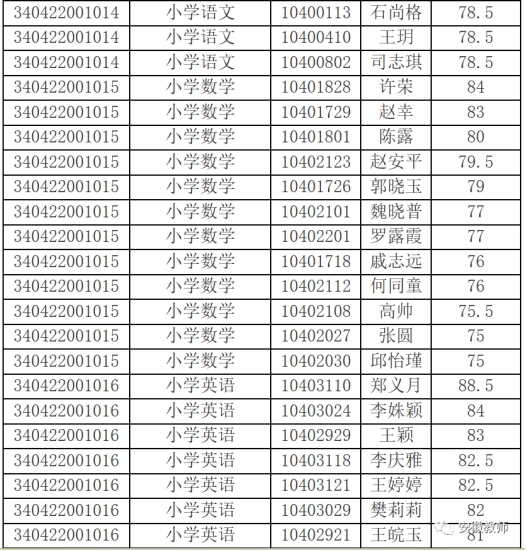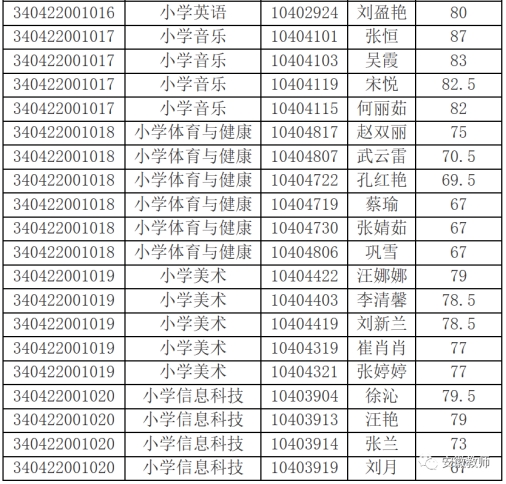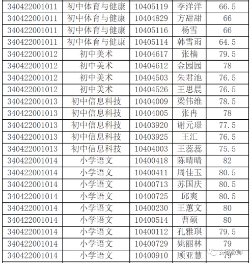 1、2023壽縣特崗教師招聘具備面試資格人員名單