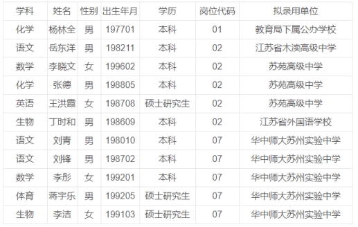 根據(jù)《2023年蘇州市吳中區(qū)引進教育人才公告》的規(guī)定,經(jīng)公開報名、資格審核、專業(yè)考核、體檢和考察等程序,擬錄用以下11名同志,現(xiàn)予以公示,公示時間為2023年7月28日至2023年8月7日。