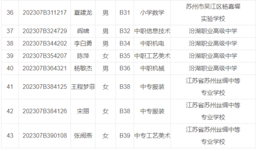 根據(jù)《2023年蘇州市吳江區(qū)第二次公開招聘備案制教師公告》,經(jīng)過考試、體檢、政審等程序,以下擬錄用人員予以公示。