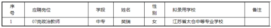 2022年蘇州太倉市教育系統(tǒng)公開招聘職業(yè)學(xué)校教師(第二批)擬錄用人員名單
