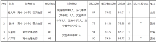 因杜大千等考生放棄體檢,根據(jù)《2023年泗陽縣公開招聘公辦學(xué)校教師公告》規(guī)定,現(xiàn)將進(jìn)入遞補(bǔ)體檢人員相關(guān)信息公布如下:
