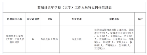 附件:《蒙城縣老年學(xué)校(大學(xué))工作人員特設(shè)崗位信息表》