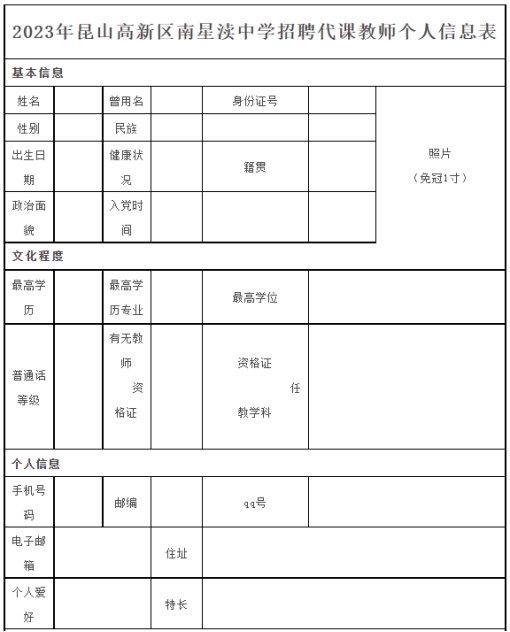 根據“教育優(yōu)質均衡發(fā)展”的要求,經研究決定,面向社會公開招聘昆山高新區(qū)南星瀆中學代課教師1名,F(xiàn)將有關事項公告如下: