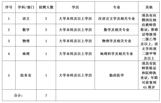 現(xiàn)根據(jù)學(xué)校發(fā)展需要,面向社會(huì)公開招聘編外人員7人,所聘人員與在編人員享受同等待遇。