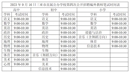 2023年三亞市直屬公辦學(xué)校第四次公開招聘編外教師報名工作從2023年9月8日開始至9月13日結(jié)束。接受應(yīng)聘人員報名共441名,符合條件進(jìn)入考試環(huán)節(jié)的應(yīng)聘人員共393名,F(xiàn)將資格初審合格并進(jìn)入筆試人員名單及筆試等相關(guān)事項公告如下: