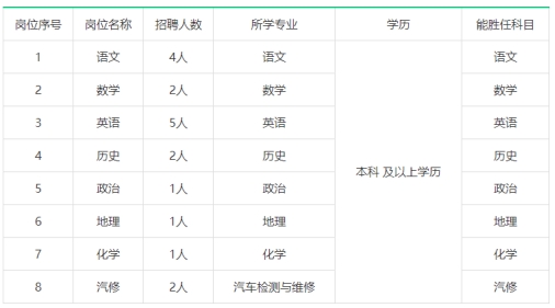 1、教學(xué)崗:師范類(lèi)全日制本科畢業(yè)生、非師范類(lèi)全日制本科畢業(yè)生或持有相關(guān)職業(yè)技能教師資格證書(shū)(有高中教學(xué)經(jīng)驗(yàn)的優(yōu)秀教師優(yōu)先);