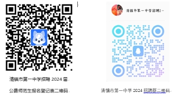 1.提交材料:凡符合應(yīng)聘條件者,請掃描下方二維碼填寫《清鎮(zhèn)市第一中學(xué)招聘2024屆公費師范生報名登記表》,確保所填信息真實有效。若因信息不符而影響錄用的,后果自行承擔。