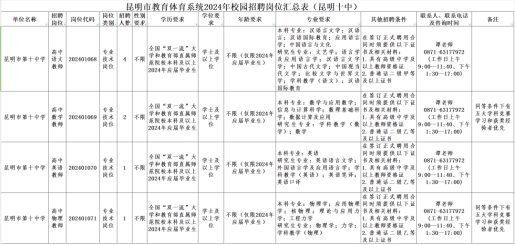 招聘時間、地點、程序及注意事項等嚴格按照《昆明市教育體育系統(tǒng)2024年校園招聘公告》執(zhí)行。