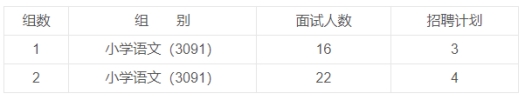 2.小學(xué)語文(3091)崗位共招聘7名,按招聘公告規(guī)定比例1:5確定(最后三名同分跟進(jìn))進(jìn)入面試考生共有38人,分兩組進(jìn)行面試。