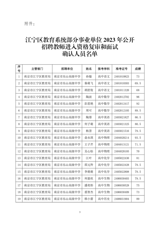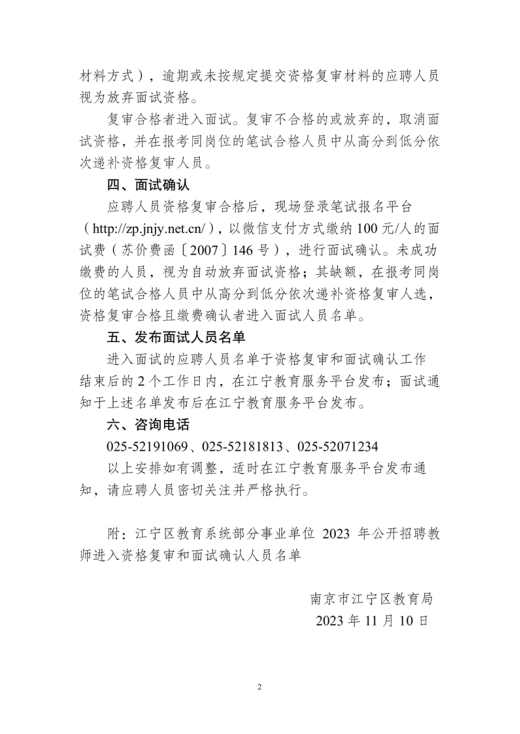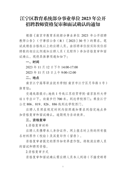 2023年南京江寧區(qū)教育系統(tǒng)部分事業(yè)單位公開招聘教師資格復(fù)審和面試確認(rèn)的通知