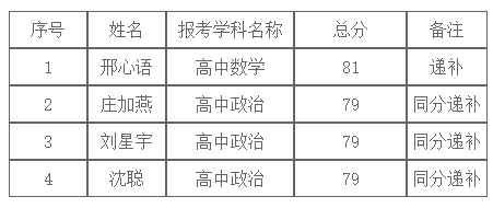 根據(jù)《南京市教育系統(tǒng)部分事業(yè)單位2023年公開招聘教師公告(寧事招公告(R)〔2023〕30號)》精神,因有人放棄資格復(fù)審,按招聘計(jì)劃1:3,根據(jù)總成績由高到低,以下人員遞補(bǔ)資格復(fù)審,遞補(bǔ)資格復(fù)審工作通知如下: