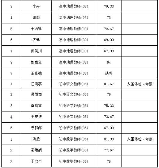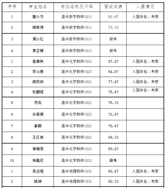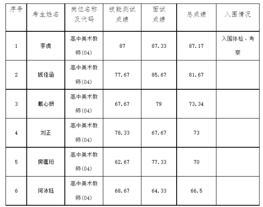 根據(jù)《丹徒區(qū)教育局所屬學(xué)校2024年“才薈丹徒”校園公開招聘教師公告》(鎮(zhèn)徒人社事招公告[2023]10號(hào))規(guī)定,于11月19日組織開展了面試工作,現(xiàn)將面試成績(jī)及入圍體檢、考察名單予以公示。公示時(shí)間為2023年11月19日至11月24日。體檢的具體時(shí)間、地點(diǎn)電話通知,體檢費(fèi)用自理。